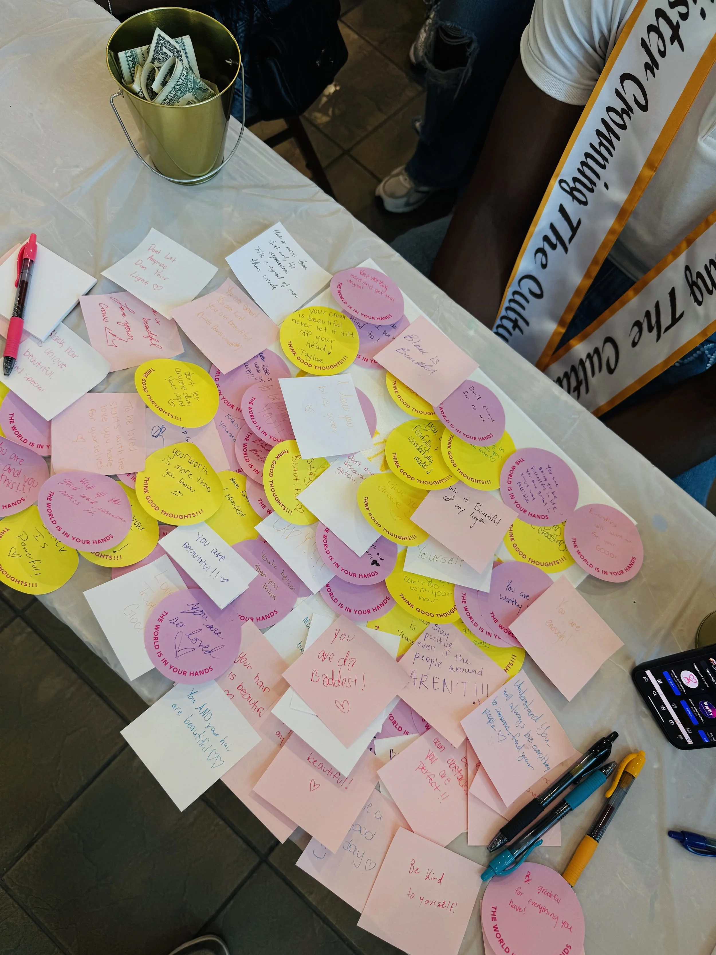 Our Monthly Mini Service Projects focus on small but impactful acts of service that uplift both people and spaces. These initiatives include activities such as community cleanups, Crown Me Days, and hair affirmation tables where individuals are encouraged to engage in positive self-talk and cultural pride. Each project is designed to strengthen community bonds while reinforcing the importance of self-worth and collective care.
